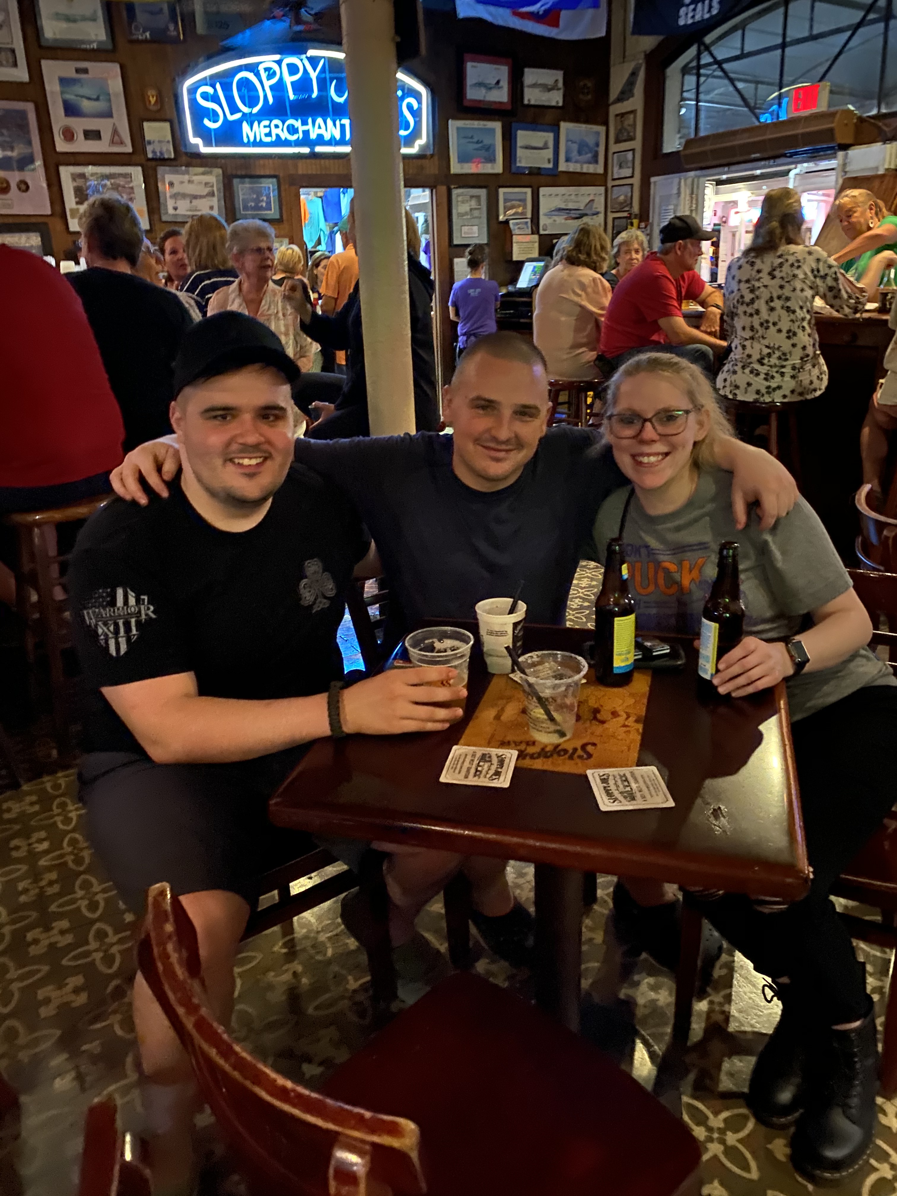 Now, for any of you that haven’t flown into Key West directly, you are not greeted with a fancy covered walkway to the terminal. No, instead you walk out of the plane, down some airstairs, and onto the tarmac which, honestly, is the only way to arrive into key west! You leave your home airport when it’s 20 degrees and snowing, and 3 hours later the doors open and its 85 degrees sunny and humid… no better shock to the body then this! The three of us walk from the jet to the terminal building, and with the sun, blue skies, and heat it feels like home! As we walk inside, the first thing we find is a bar welcoming us to Key West! Walking out of the terminal we are greeted by a chicken just walking around… and yes! They really do walk around freely on the island, and if you aren’t prepared for it you have to take a second look! We ordered an Uber and get checked into our HOSTEL. I couldn’t believe it either, but I got Jolynn and Jimmy to agree to stay at a hostel! Granted it was only a four person bunk room and had three pools, but still a hostel! (God help the random fourth person that would bunk with us that night!) Once we are settled in the hostel, we headed out for food and drinks! Sloppy Joe’s is the first place on the list, we walked in, ordered food and drinks, and took a ton of pictures.